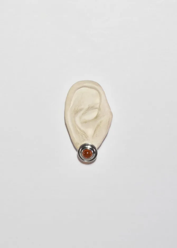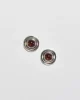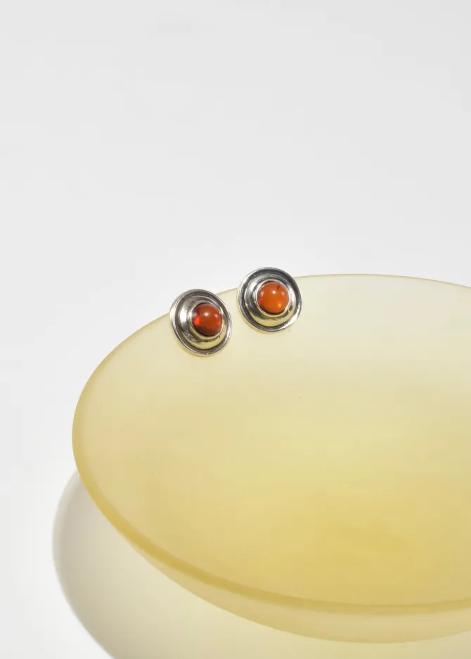 Classic, vintage sterling earrings in a circle shape with round amber cabochons, pierced.
