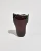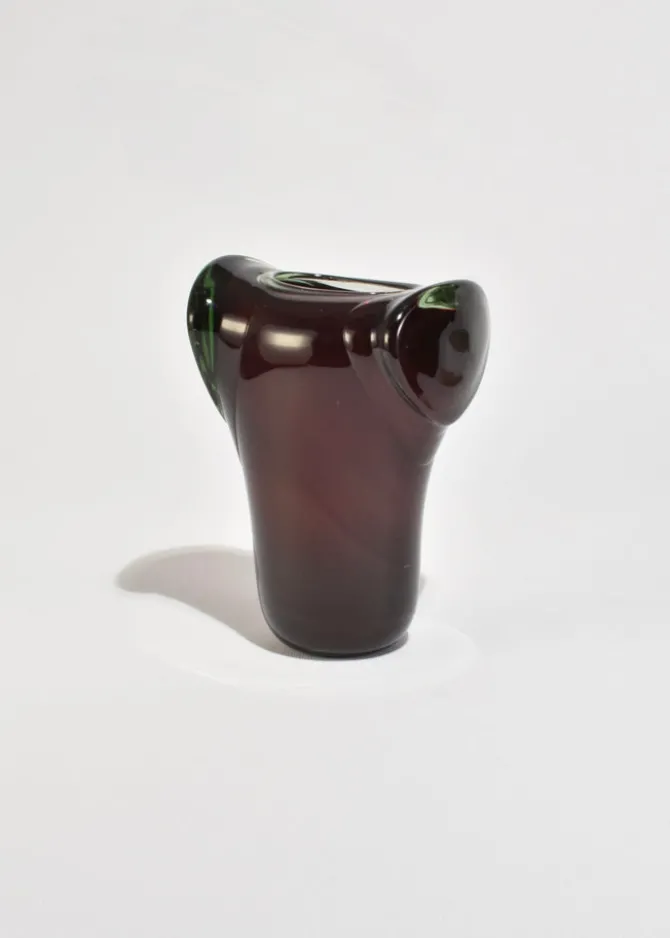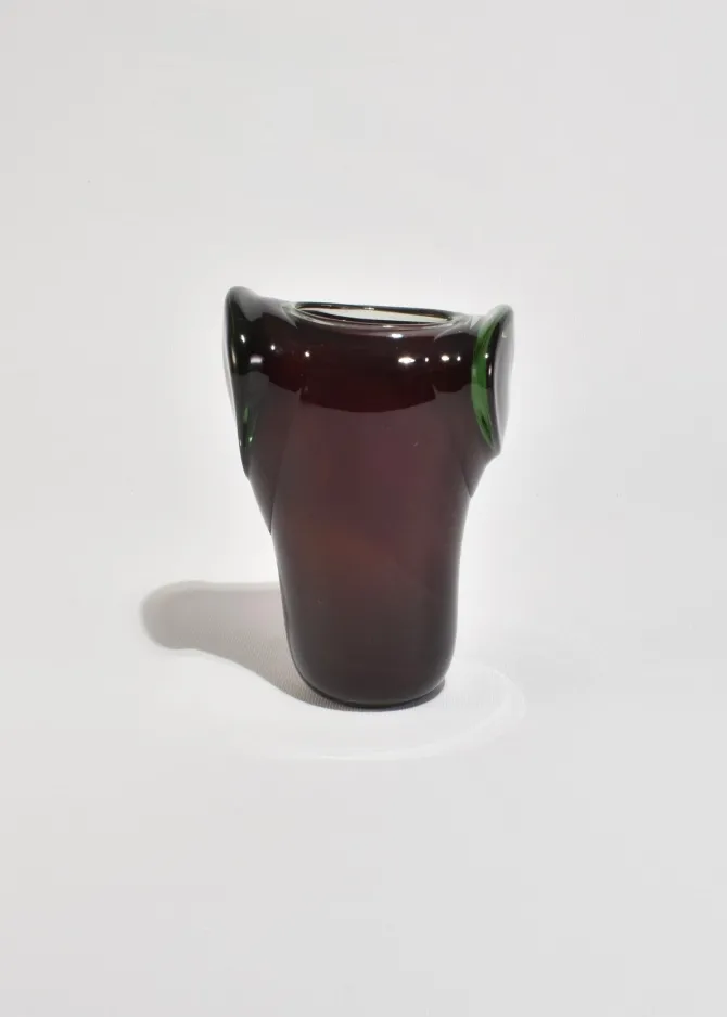 Deep aubergine blown glass vase with subtle green accents at the rim. The glass transitions from a rich, opaque body to translucent edges that catch the light beautifully.