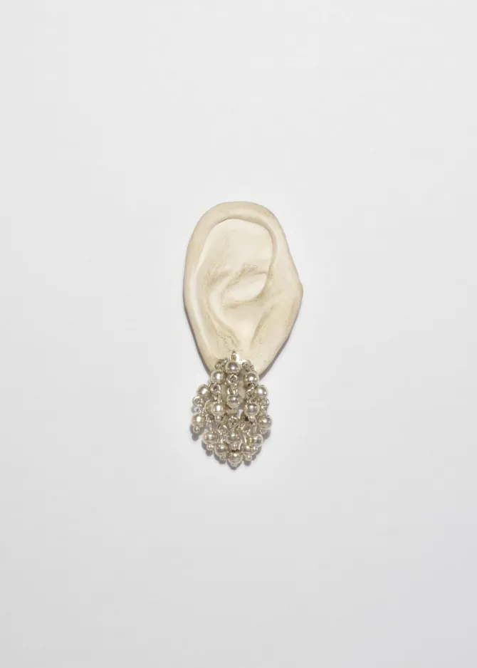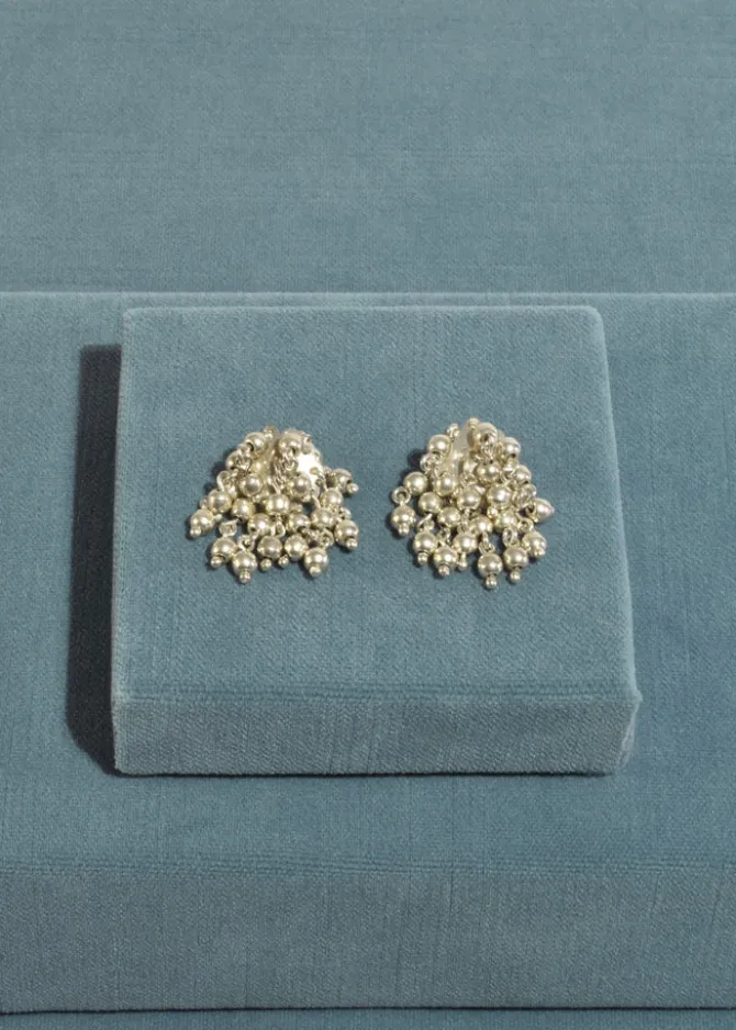 Rare, vintage sterling earrings with beaded fringe detail, pierced.