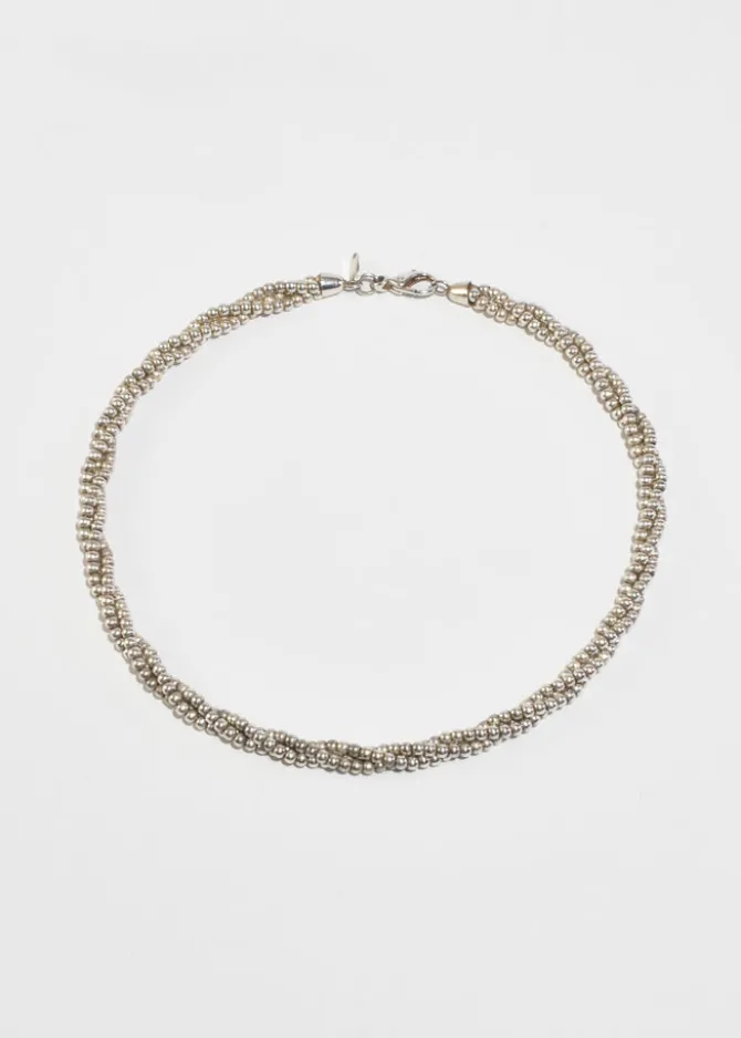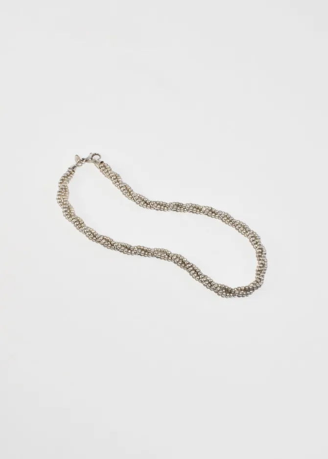 Vintage, sterling beaded necklace with twist detail and clasp closure. Stamped,Italy 925.