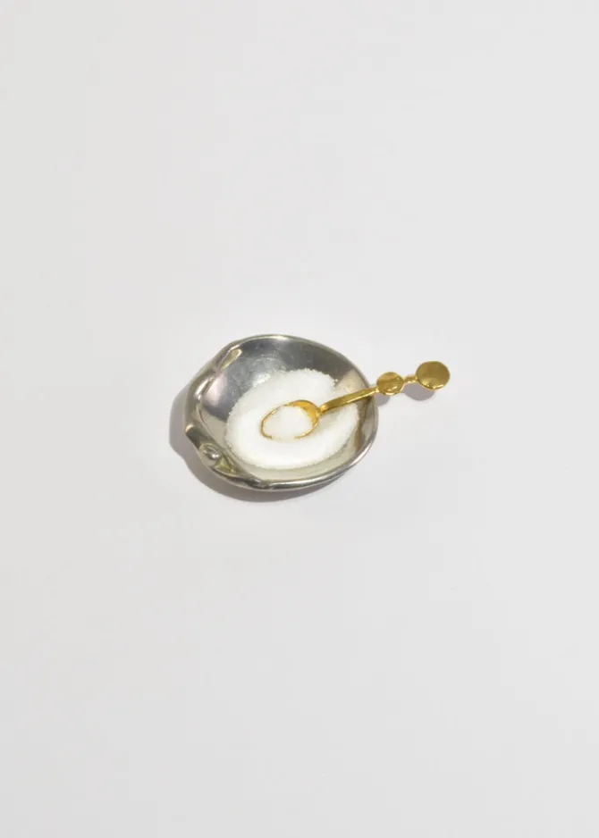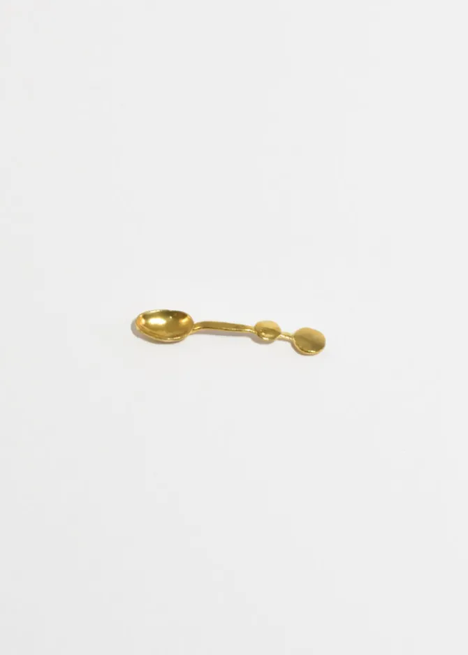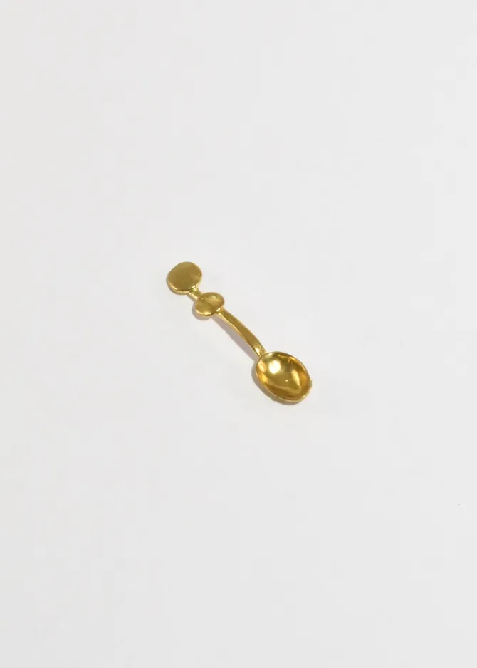 Petite brass spoon with dot details, handmade in Los Angeles. Note, each piece will have subtle variations unique to each casting.Perfect for serving salts and spices, scooping tea, or as a petite utensil for condiments.