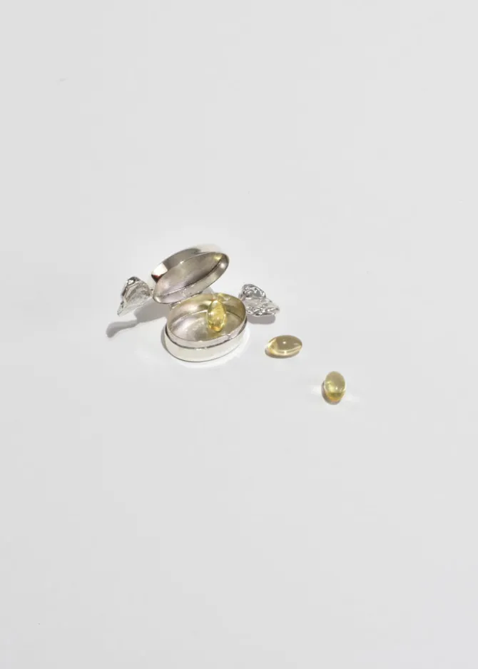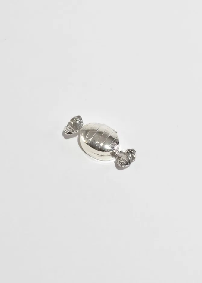 Vintage sterling silver pill box in a charming candy shape. Stamped 925.