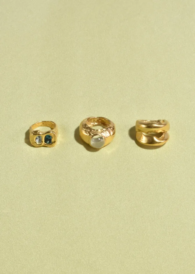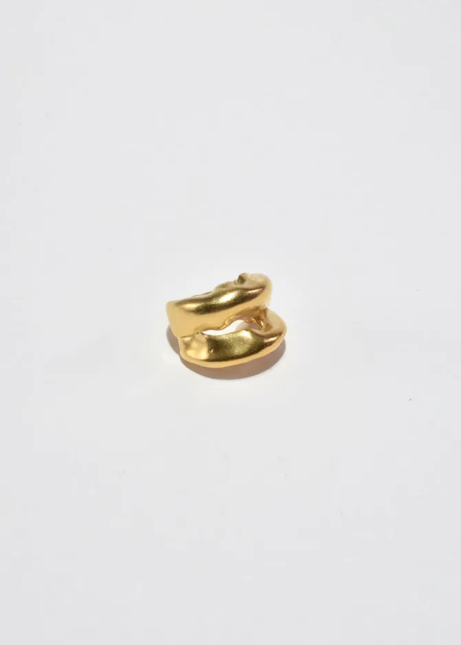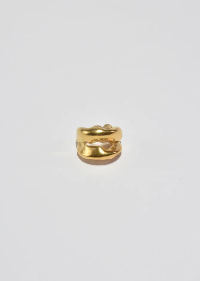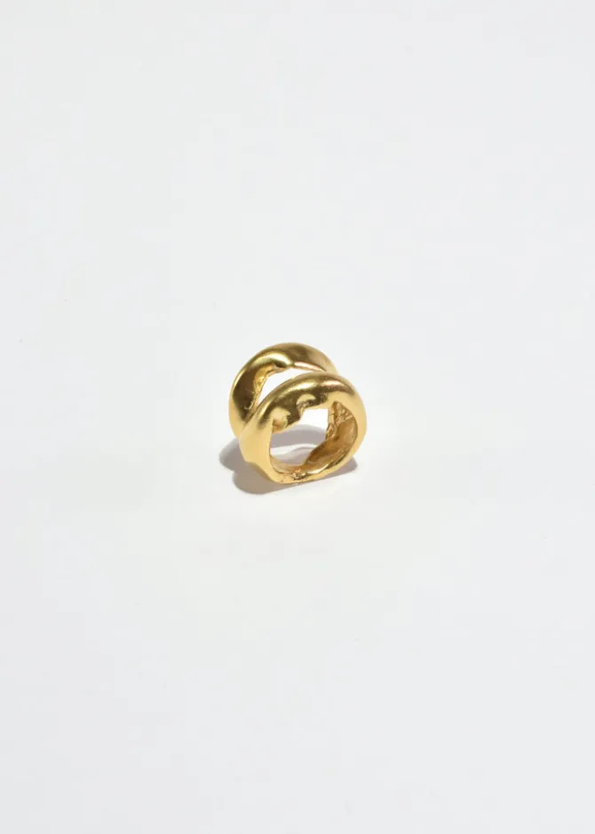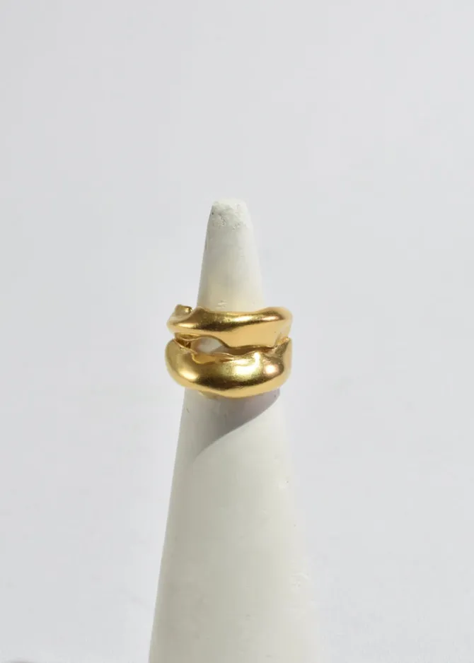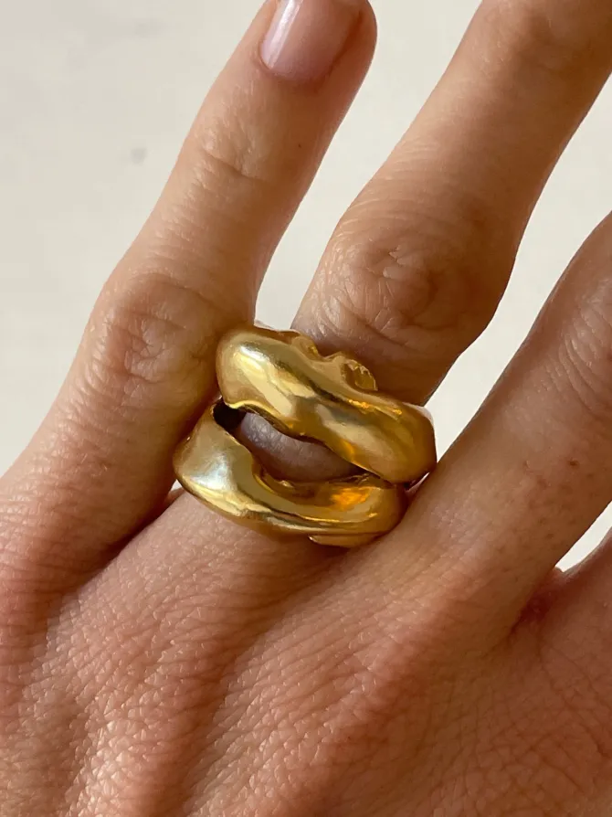 Handmade gold plated organic double band ring. Handcrafted in Valencia, Spain bySimuero. Stamped 925.