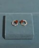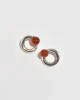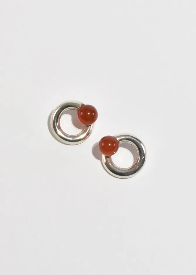 Rare, vintage sterling circle loop earrings with round carnelian stones, pierced.