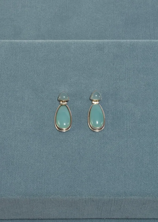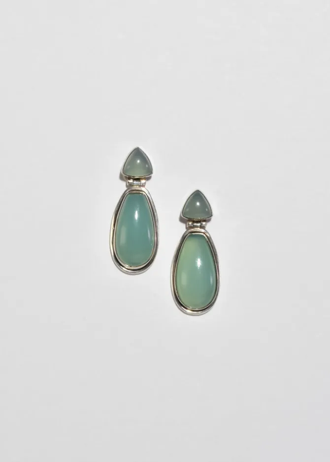 Rare, vintage sterling earrings with beautiful chalcedony stones and drop detail, pierced. Stamped,SOL 925.