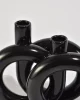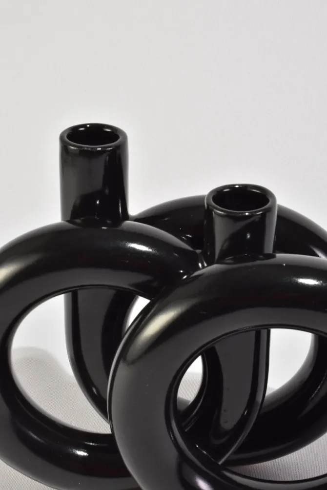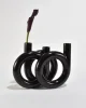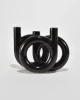 Rare, black circular ceramic vase with three openings.Made in Japan, attributed to Toyo.