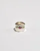 Vintage silver wide band ring with curved edge detailand ruby, peridot, and citrine cabochons. Stamped925.