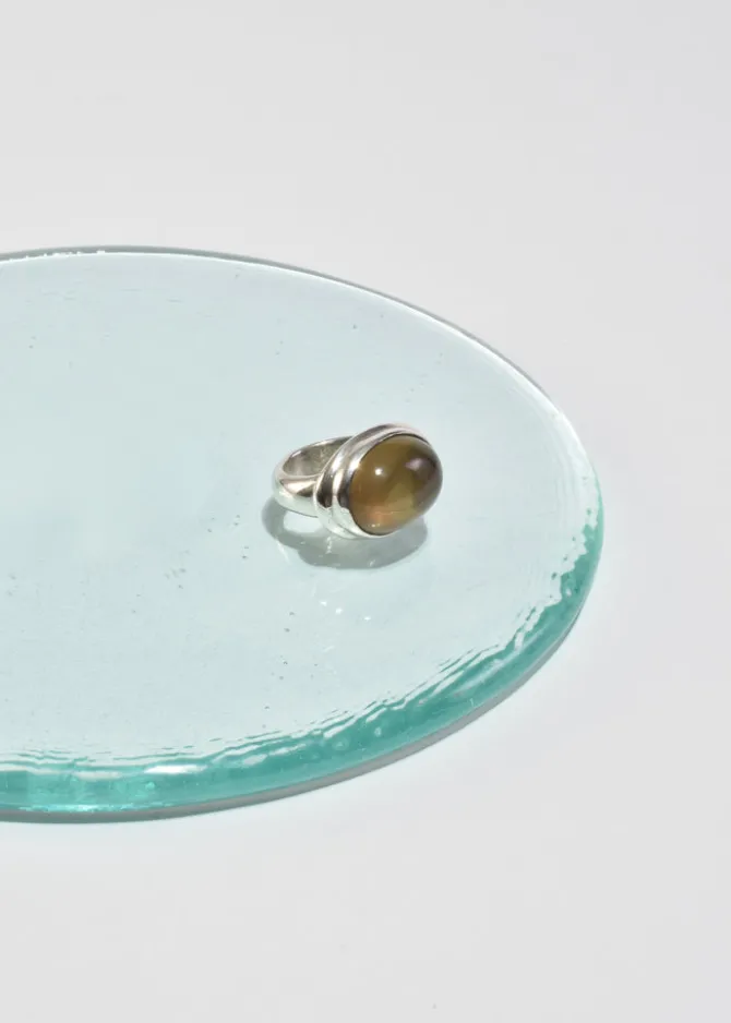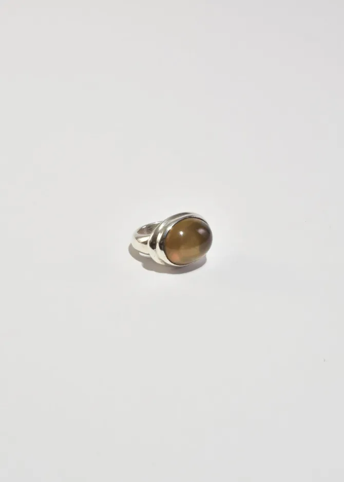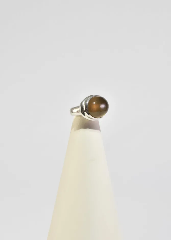 Rare, vintage handmade sterling statement ring with an oversized citrine cabochon.Singed by the artist.