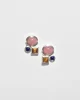 Sterling earrings with colorful stones in geometric shapes, pierced. Stamped,Thailand 925.