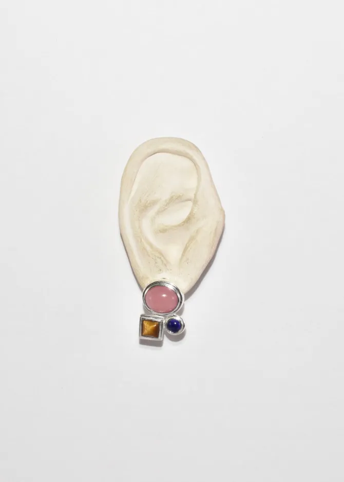 Material: Sterling silver, rose quartz, tiger’s eye, lapis lazuli.