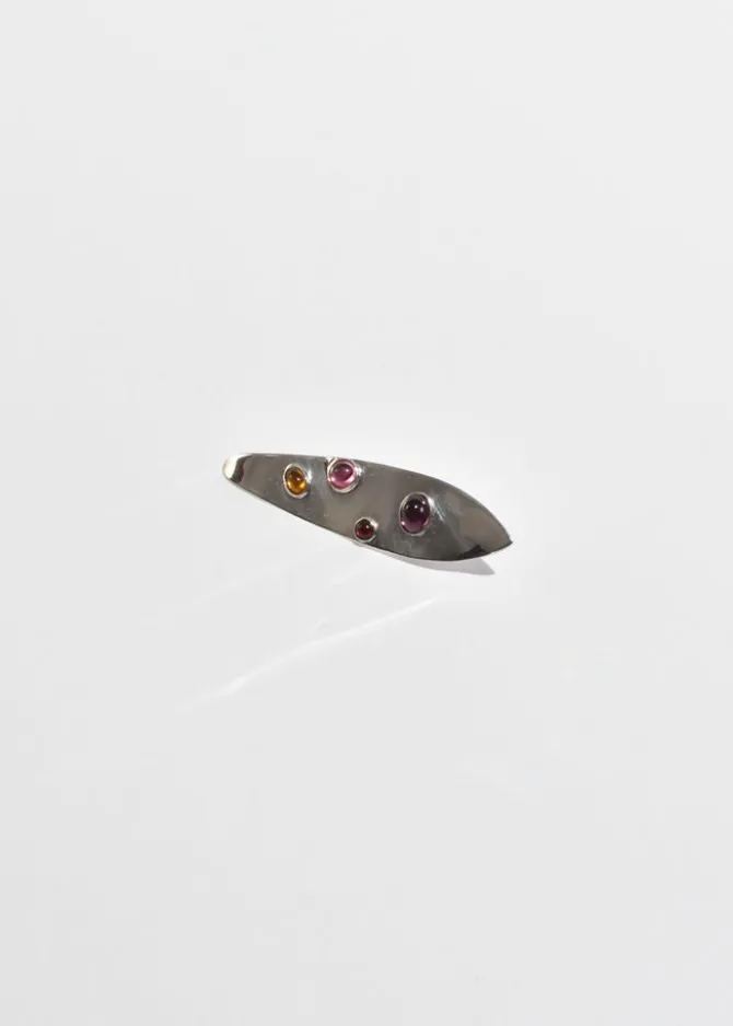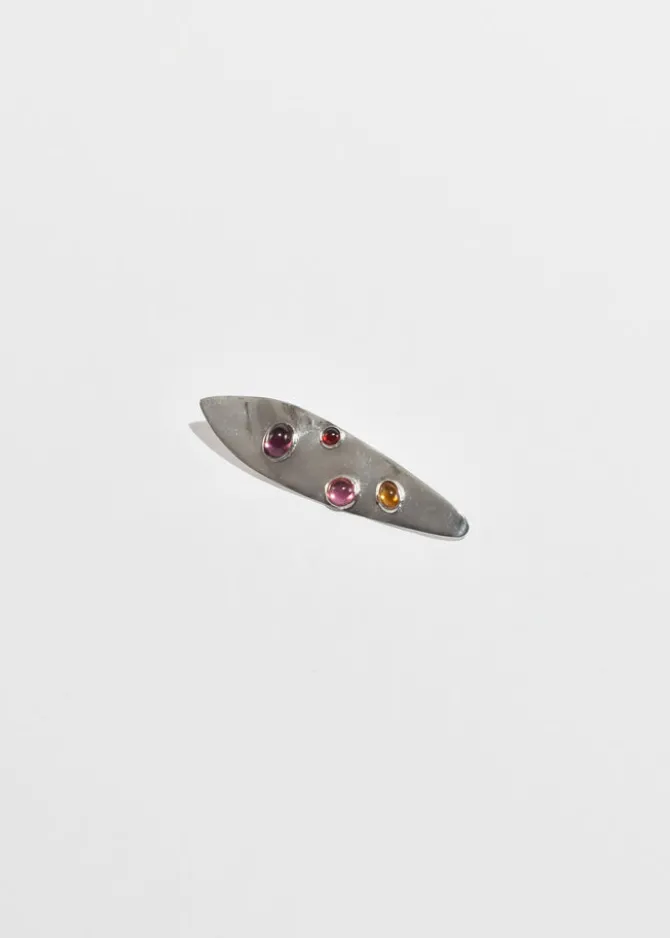 Rare, vintage sterling modernist leaf brooch with colorful glass cabochons and pin-back closure. Stamped,Sterling.