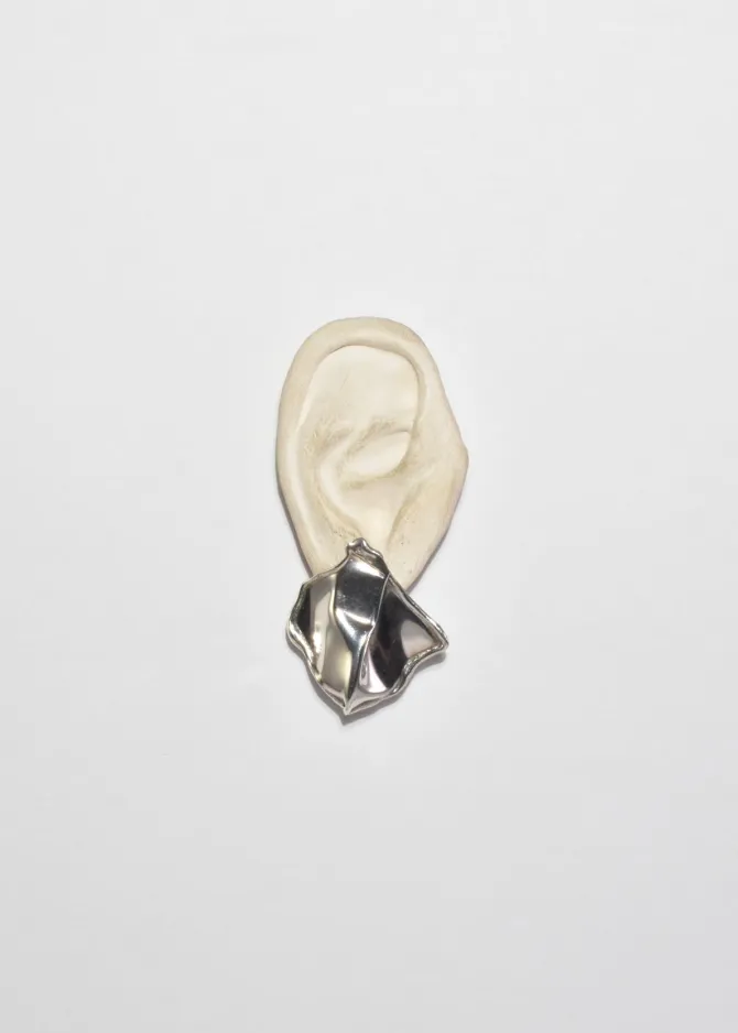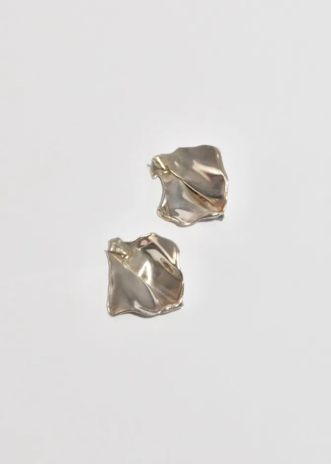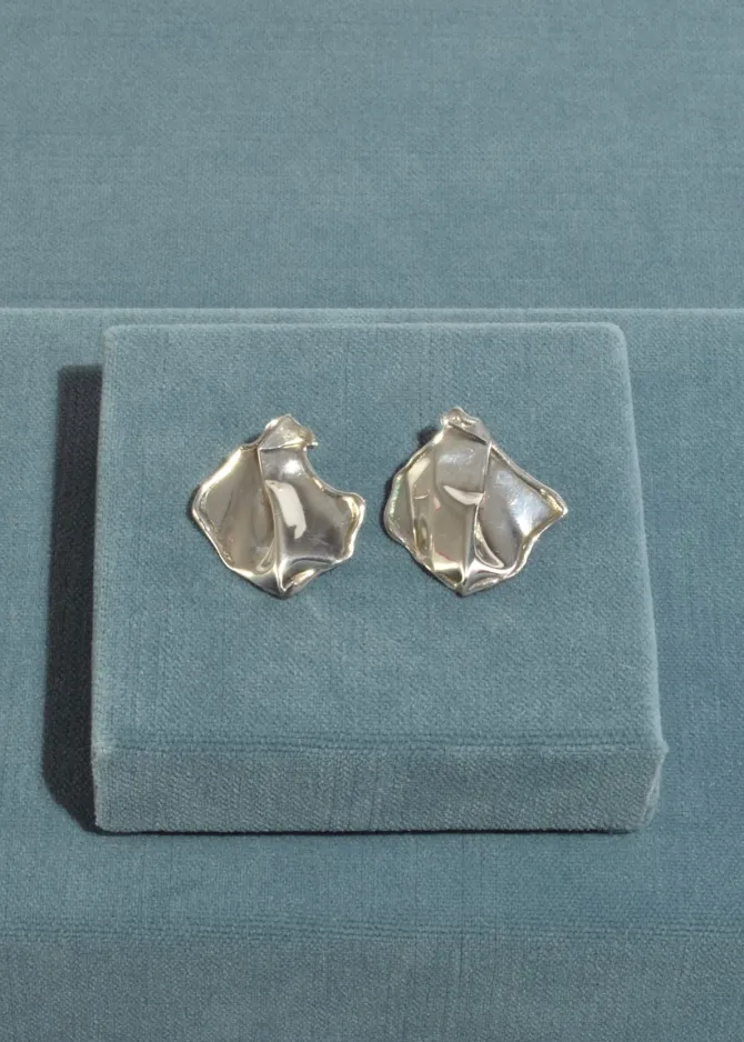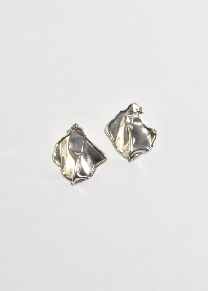Rare, vintage silver earrings in a sculptural crushed shape, pierced.