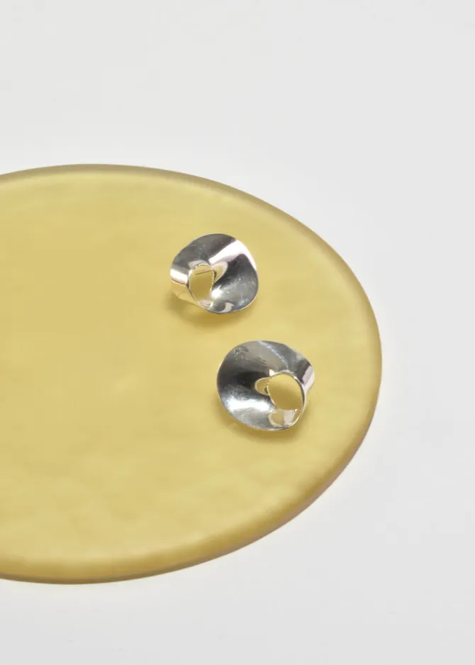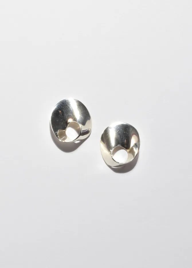 Classic, vintage sterling earrings in a sculptural curved circled design, pierced. Stamped,Mexico 925.