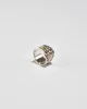 Vintage, sterling arts and crafts style ring with a curvy band, line detail, and amethyst and blue topaz stones. Stamped,AHM 925.