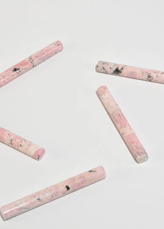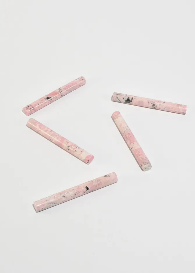 A set of five cutlery rests in striking pink rhodonite. Handcrafted in Perú, designed by Casa Shop.