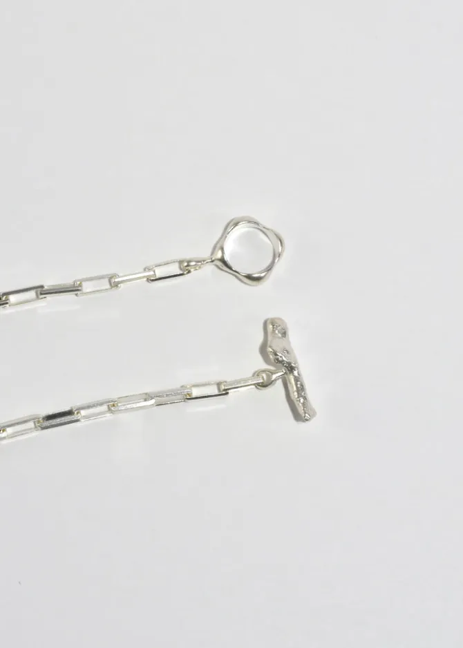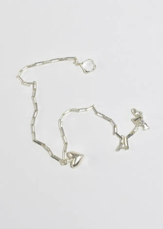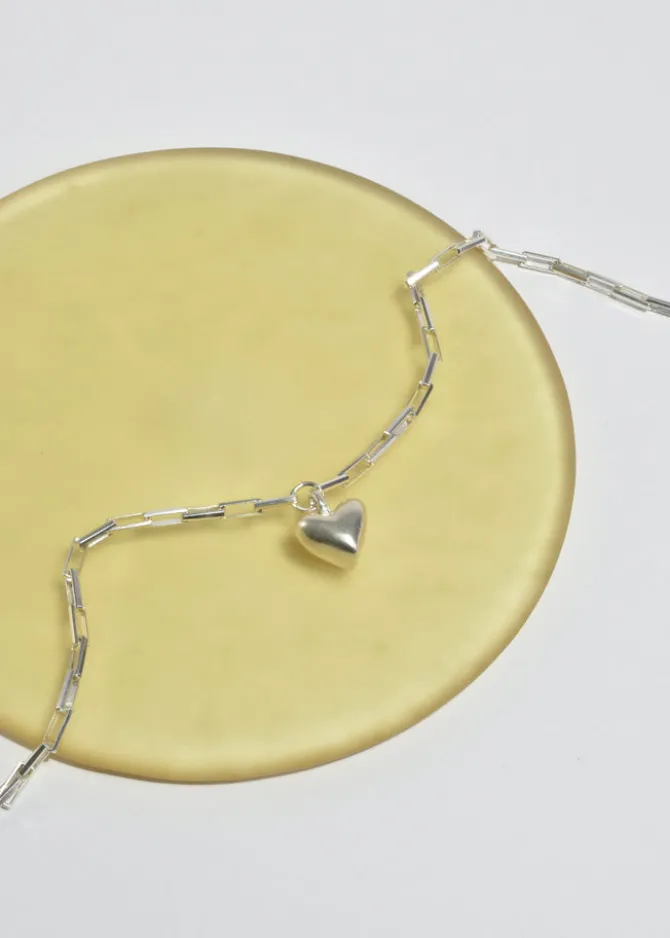 The Daphne necklace features the signature Dunton Ellerkamp clasp hardware, rectangular chain links and a heart pendant. Assembled in solid sterling sterling with an Italian sterling silver chain.