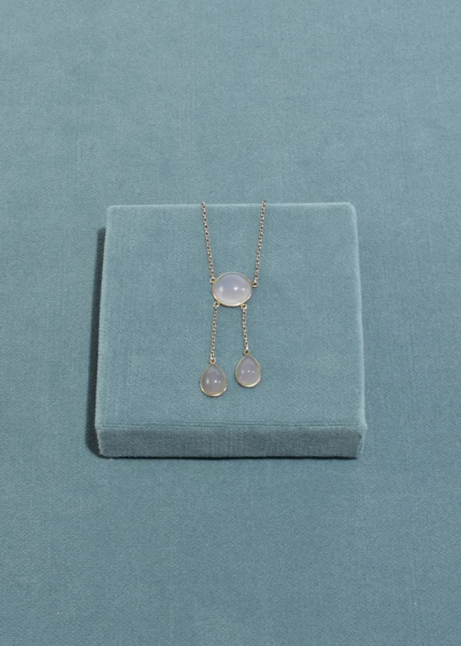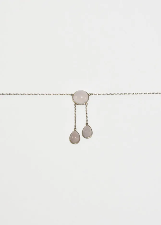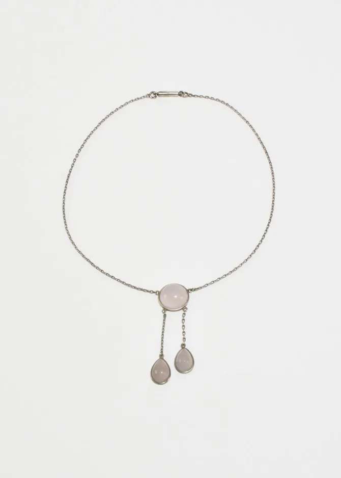 Rare, antique sterling box chain necklace with beautiful asymmetrical moonstone detail and tube slide clasp closure.Ca. 1920’s.