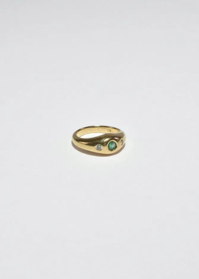Stunning vintage gold ring with faceted emerald and diamond stones. Stamped10k.