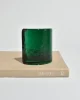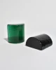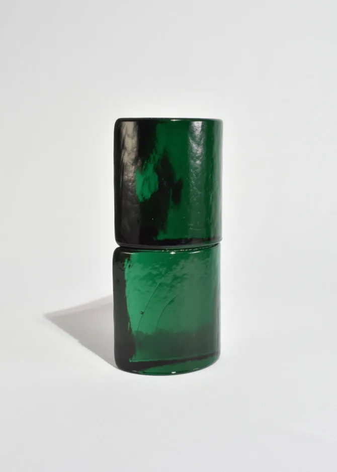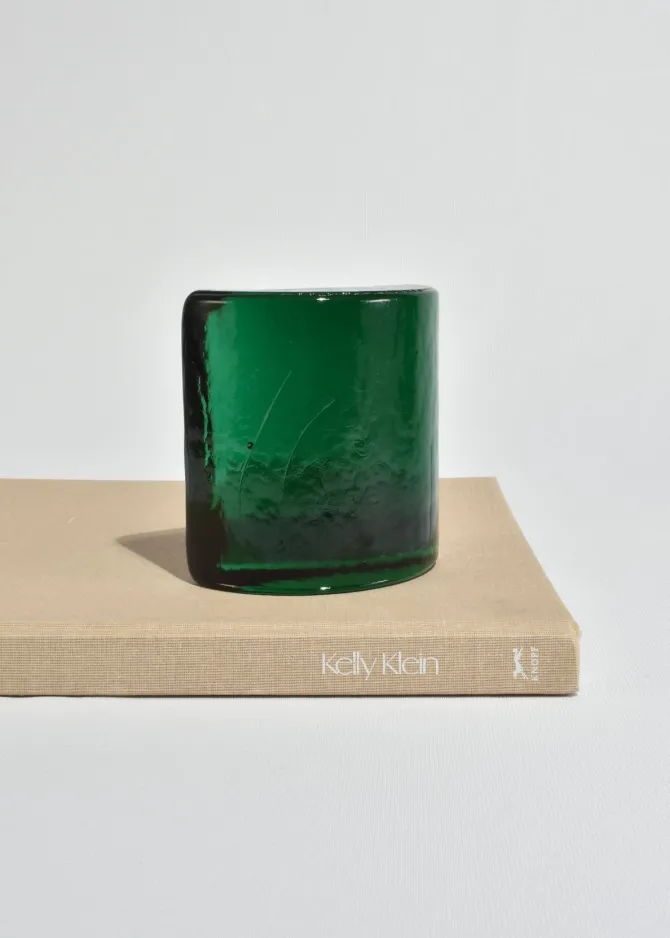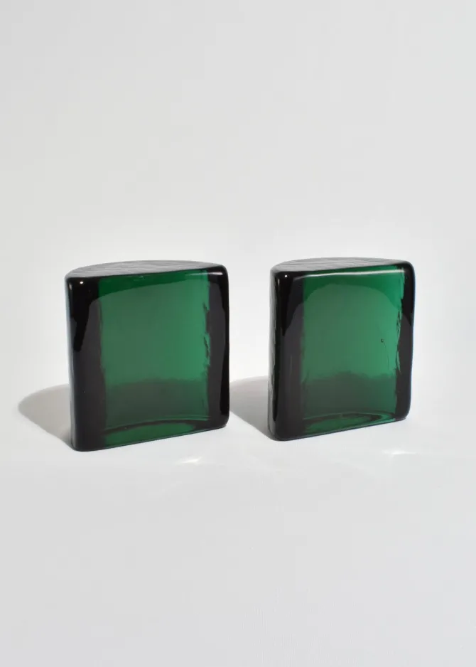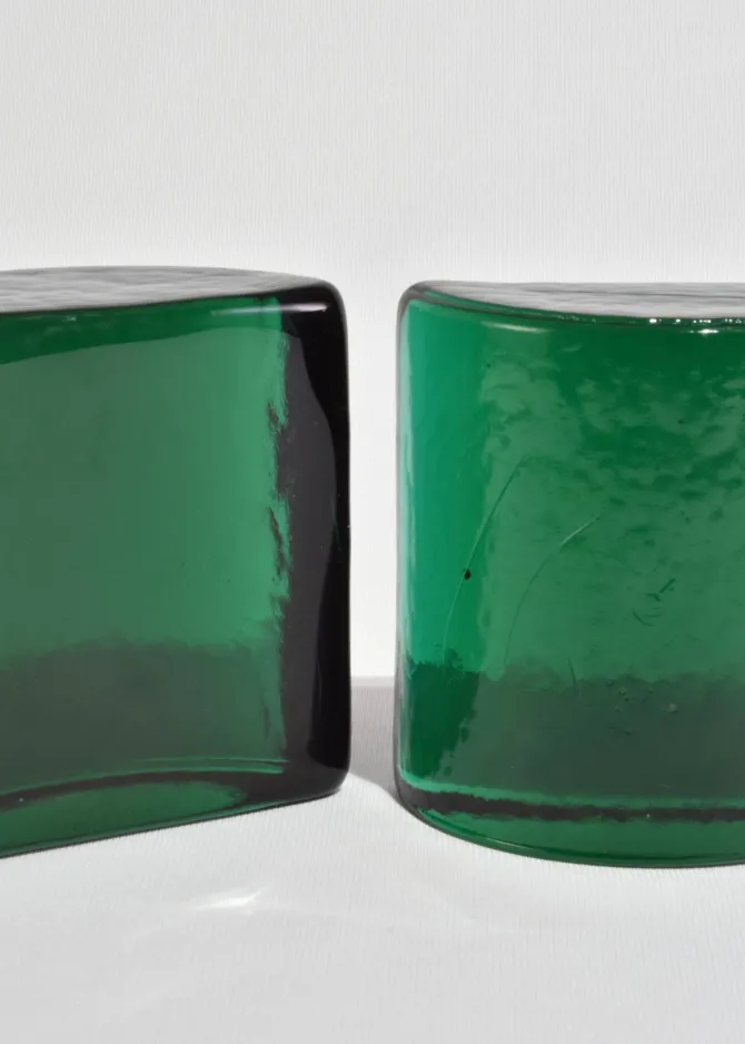 Set of two vintage glass half-moon bookends in emerald by Blenko Glass Company.