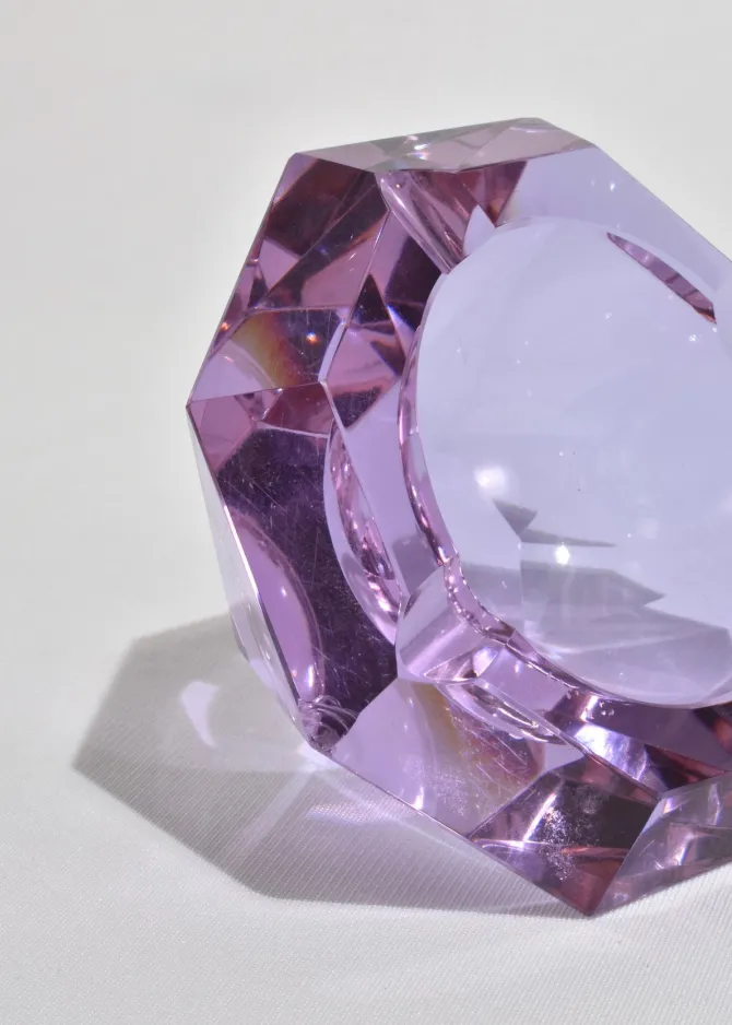 Beautiful lilac faceted glass ashtray or catchall. Perfect for jewelry keeping, part of a table scape or a catchall for small treasures.