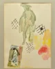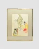 Watercolor and ink on paper, signed JDH at lower right. A loose figure study rendered in soft washes of muted green, yellow, and red, punctuated by gestural ink marks.