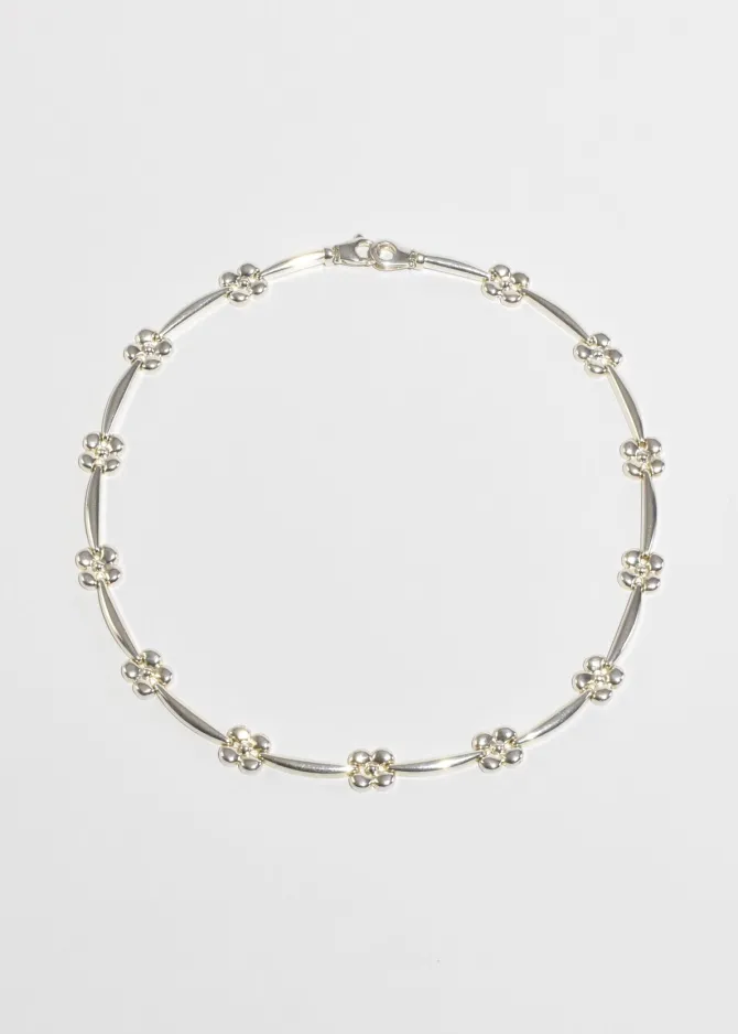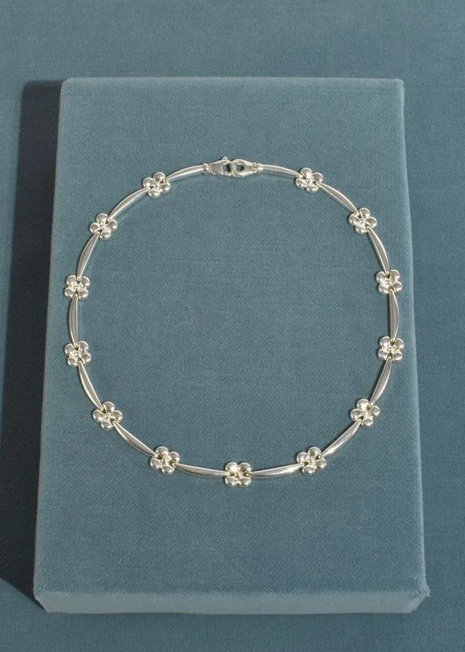 Stunning vintage silver collar necklace with rectangular links and flower detail, clasp closure. StampedItaly 925.