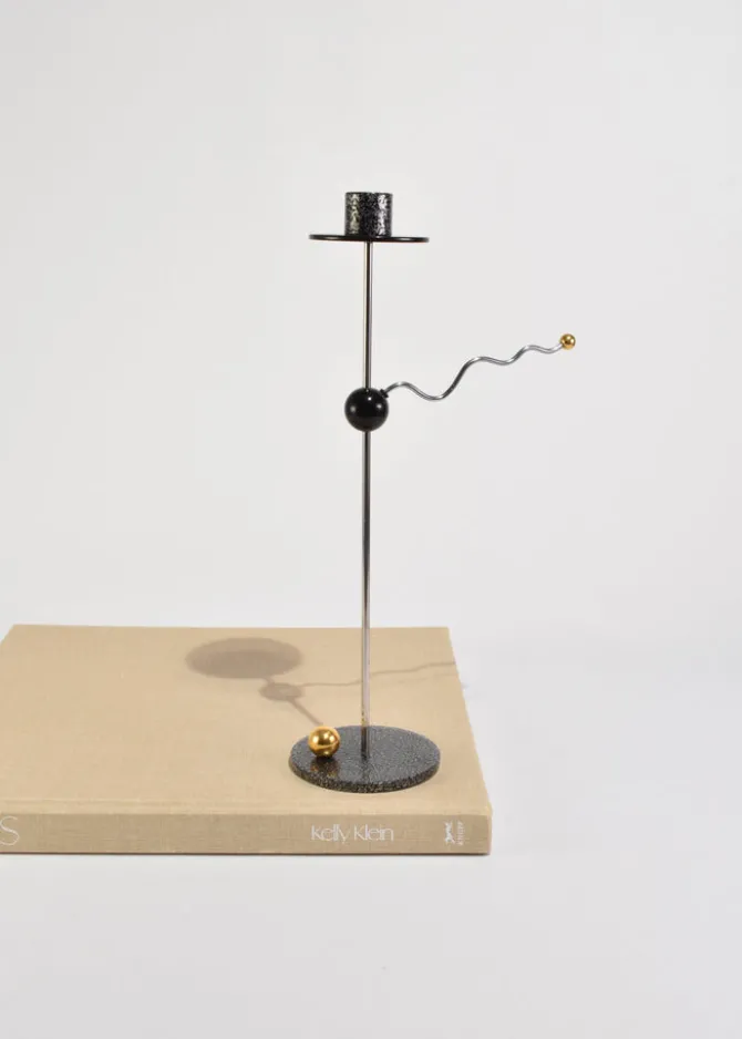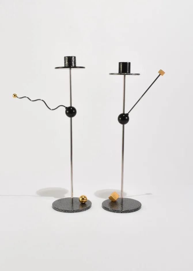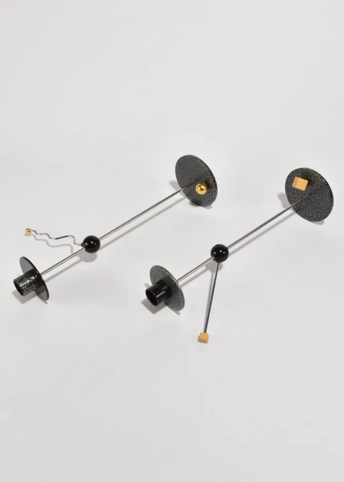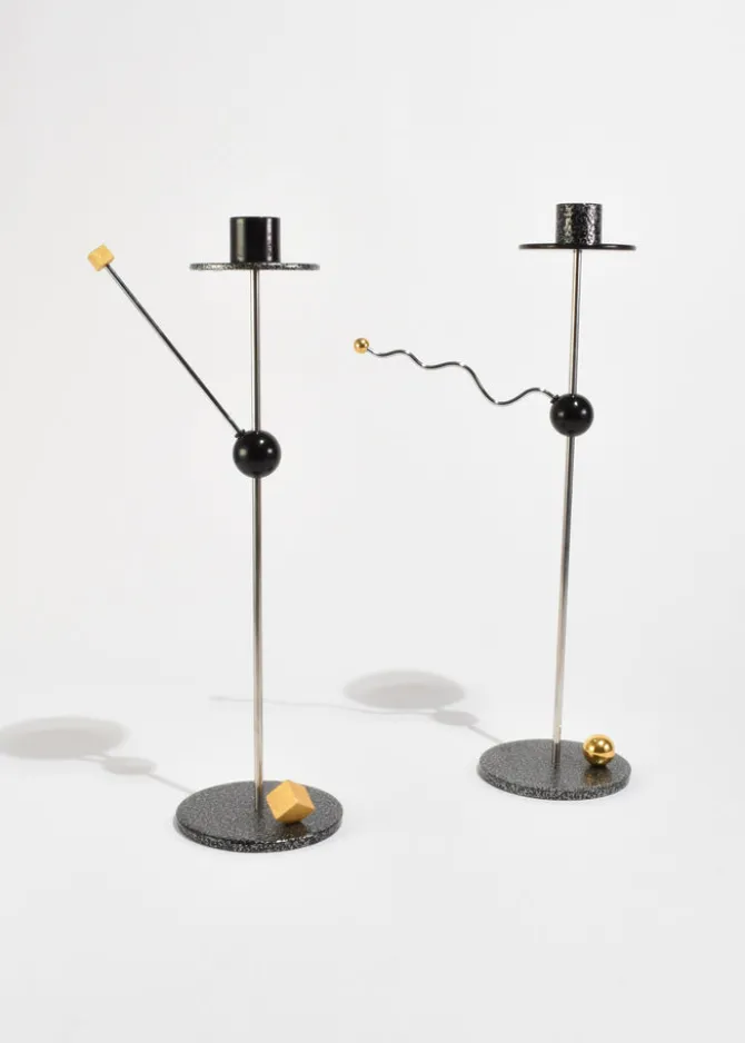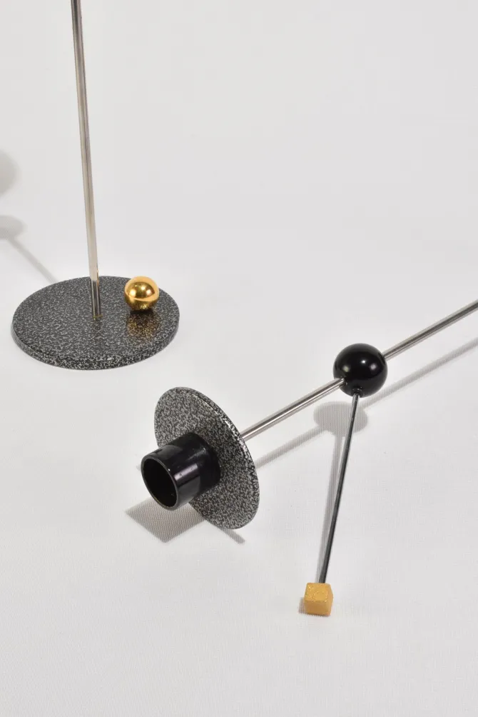 Vintage, candleholder set with geometric details in silver and gold, ca. 1980s.