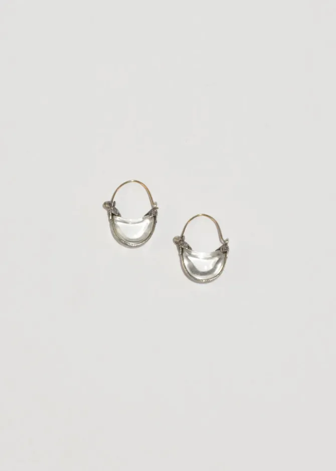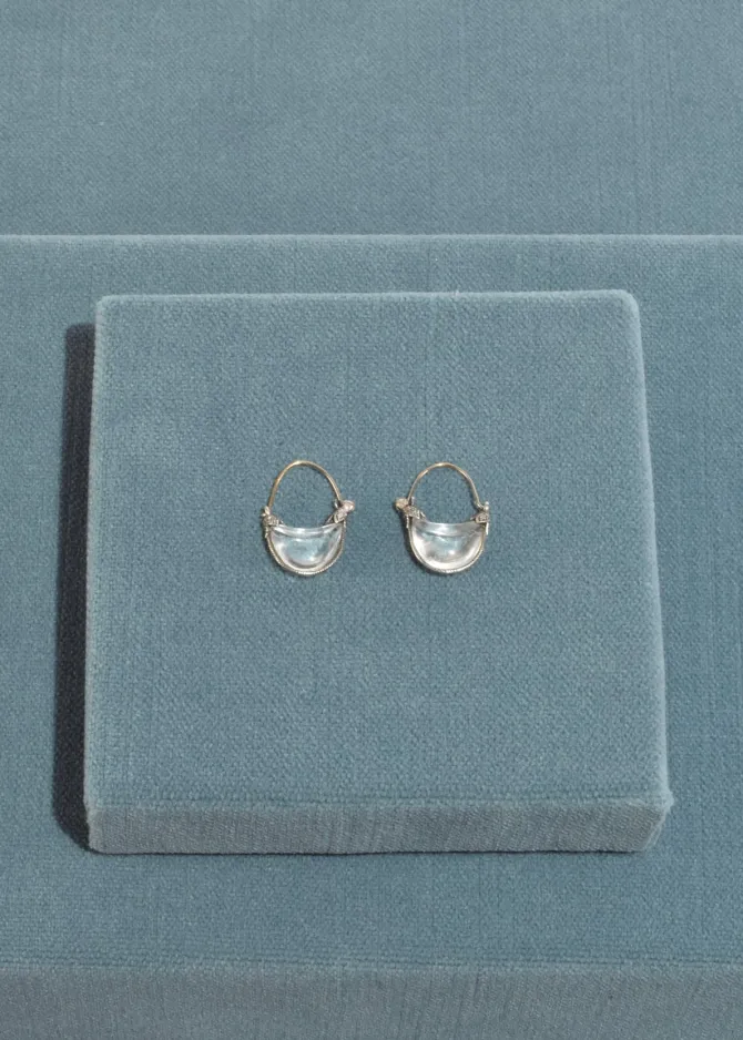 Rare, vintage sterling hoop earrings with embedded glass detail, gold ear wire and hinge closure, pierced. Stamped,MMA 925.