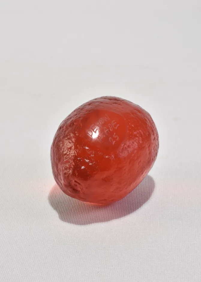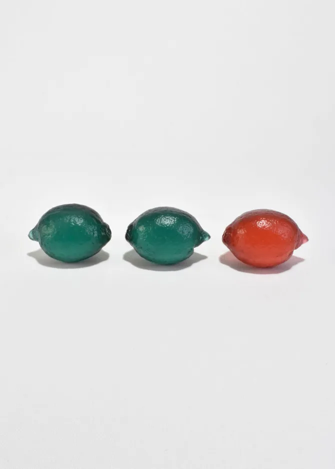 Each lemon is a personal work of art that catches and reflects light in a way that makes it look like it glows. This is due to the unique properties of high quality crystal glass. Her range of iconic colors make for a statement piece individually, as a duo or as part of a fruit bowl.