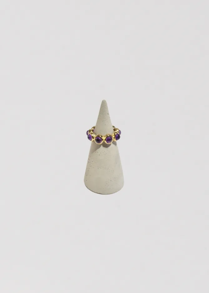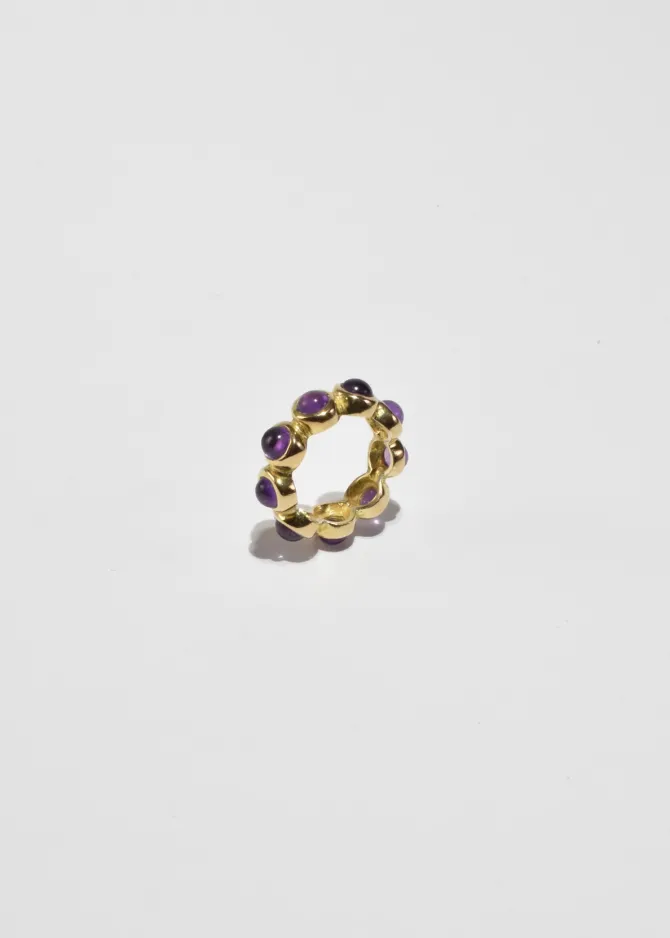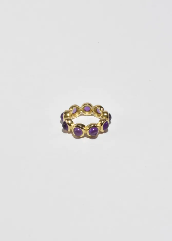 Rare, vintage vermeil band ring with round amethyst cabochons. Stamped925.