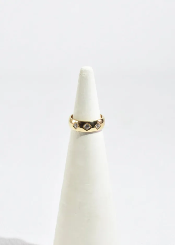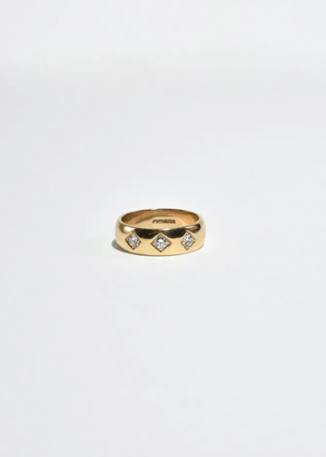 Stunning vintage gold ring with three diamonds. Stamped375.