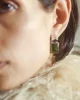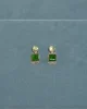 Rare, vintage sterling earrings with round green crystal cabochons and rectangular faceted glass detail. Stamped,925.