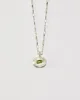 Sterling silver pendant with a drop of green tourmaline set on a handmade venetian chain, clasp closure. Handmade in the studio of Lizzie Ames in Brooklyn, NY.