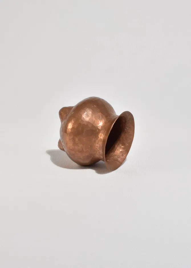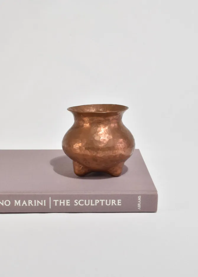 Hand-hammered copper vessel with three rounded feet and a flared lip. Perfect on its own or holding a few stems.
