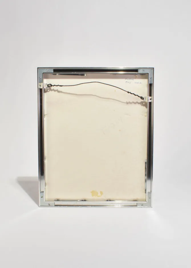 Presented in a brushed silver metal frame with deep rust-colored mat. Wired for hanging.
