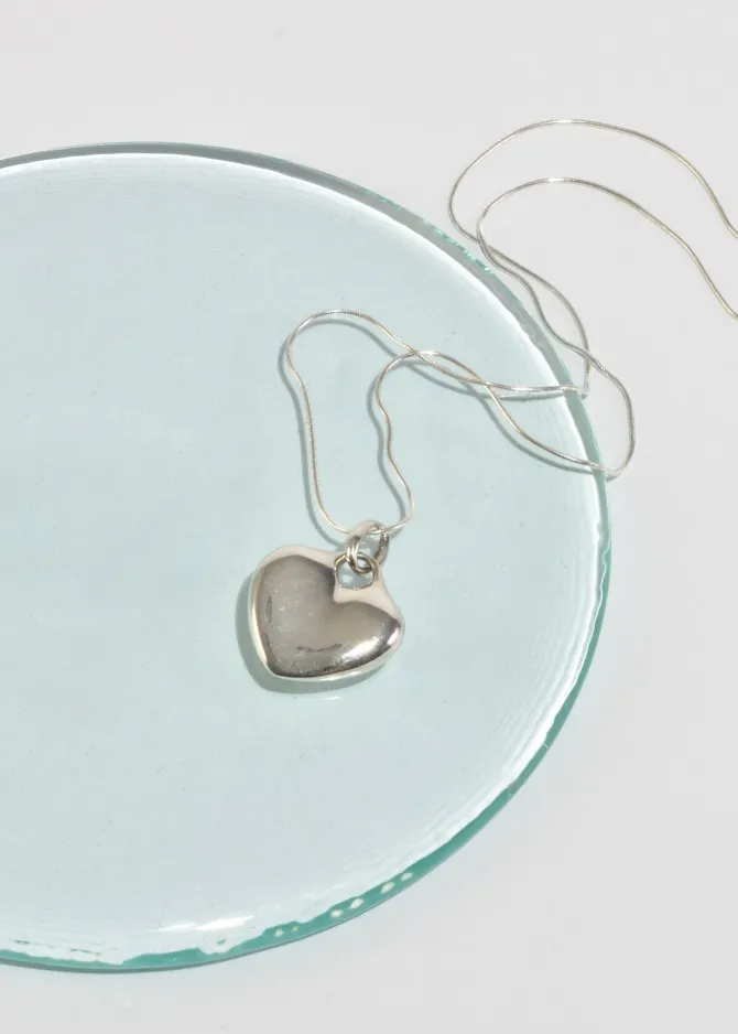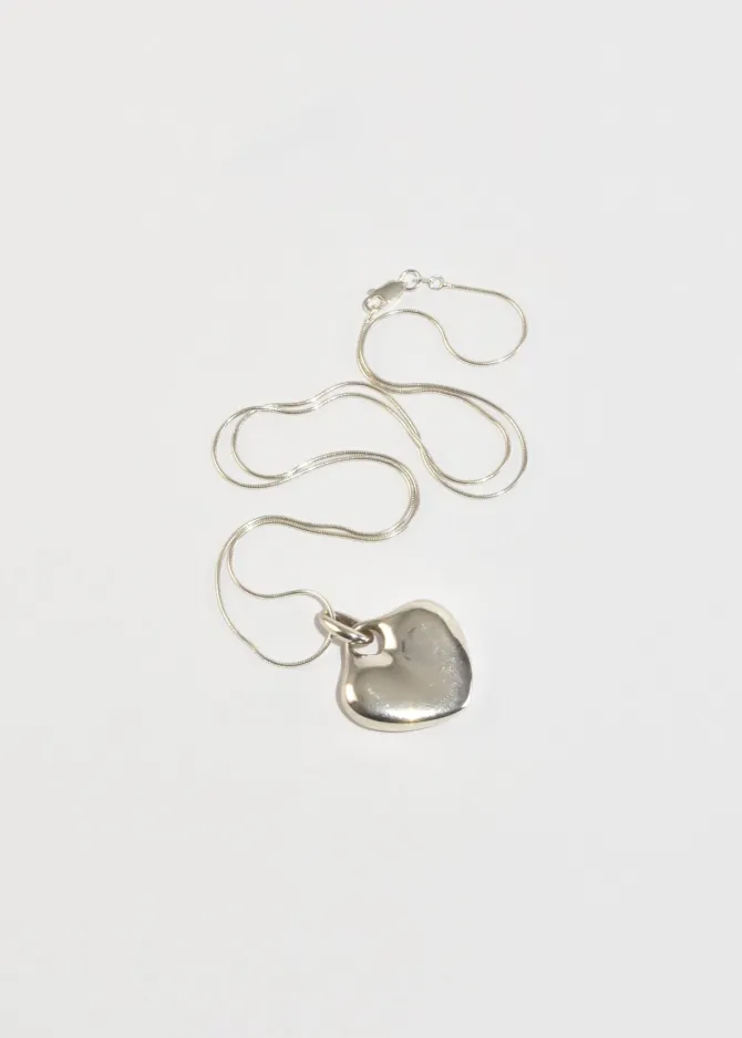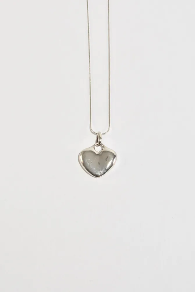 Classic, vintage sterling necklace with a sculptural heart pendant and clasp closure. Stamped,ZINA 925.