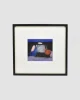 Framed under glass in a simple black wooden frame, wire on the backside.