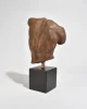 Cast plaster sculpture of a male torso mounted on a square black base. The surface features a warm brown finish that accentuates the musculature and classical contours. Signed Alva 1991 / S. Eylanbekov on reverse.