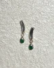 Rare, vintage silver earrings in a sculptural shape with asymmetrical malachite detail, pierced. Stamped Mexico 925.