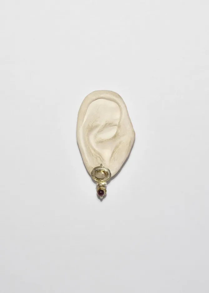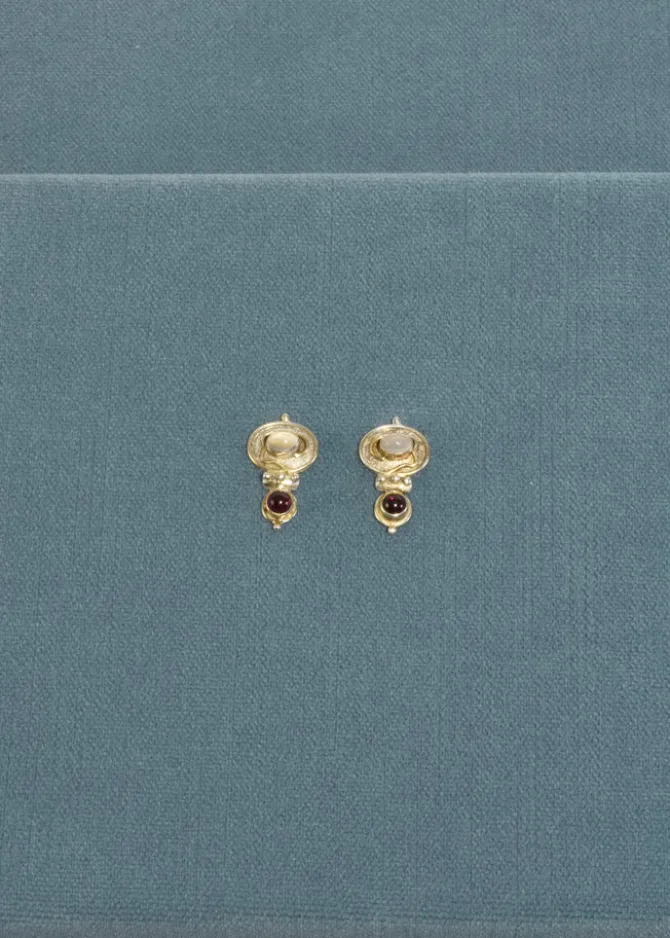 Material: Sterling silver, moonstone, garnet.