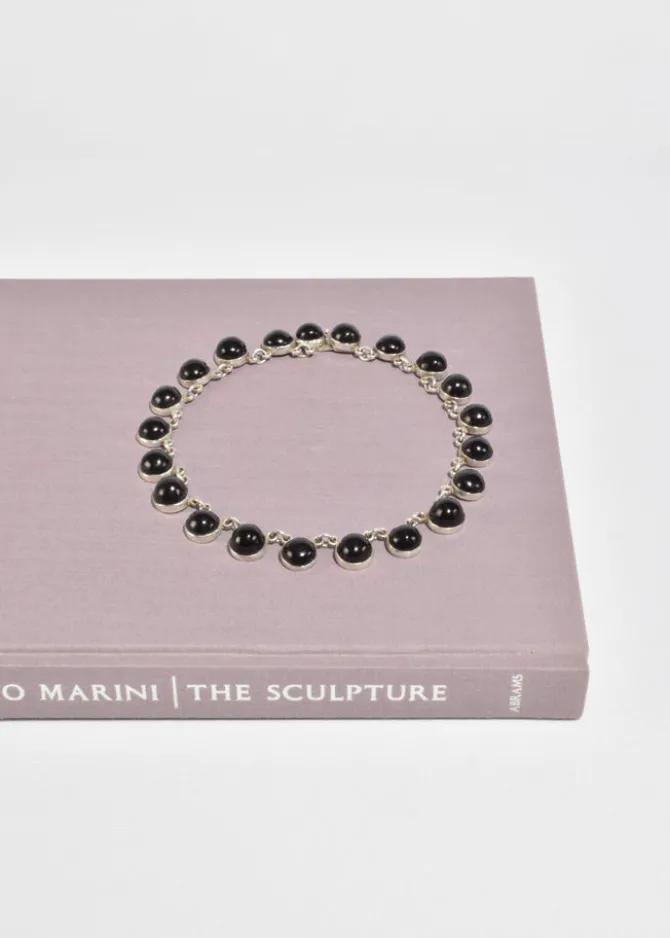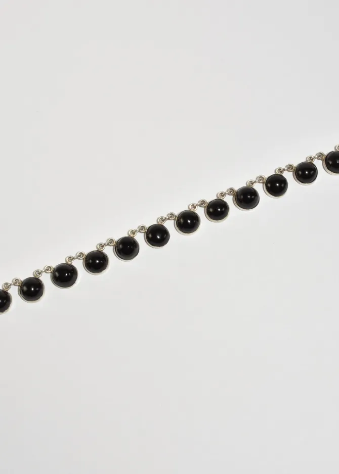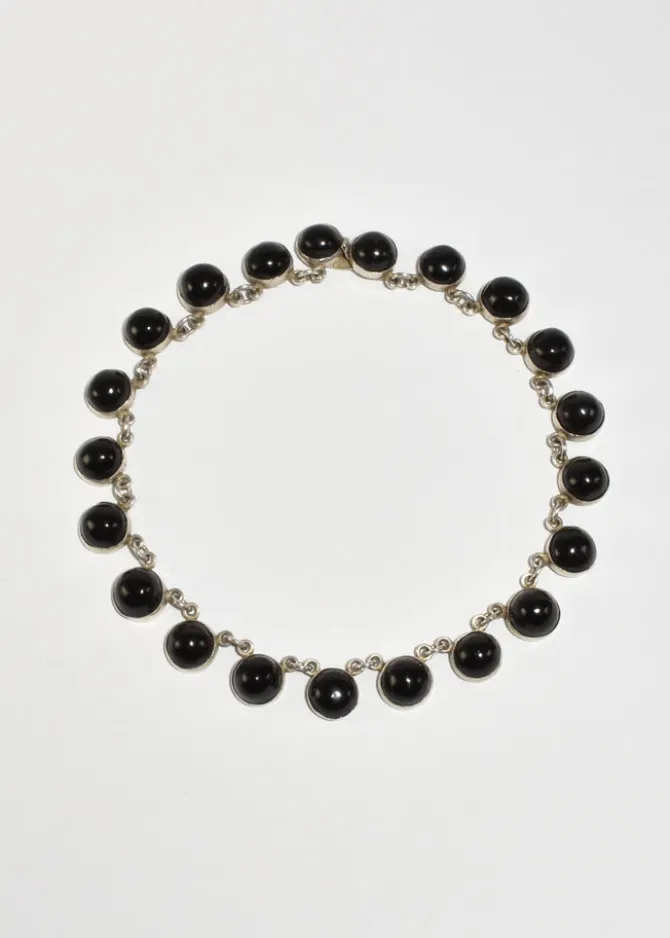 Rare, vintage sterling collar necklace with round onyx cabochons and box clasp closure. StampedSilver, Mexico.