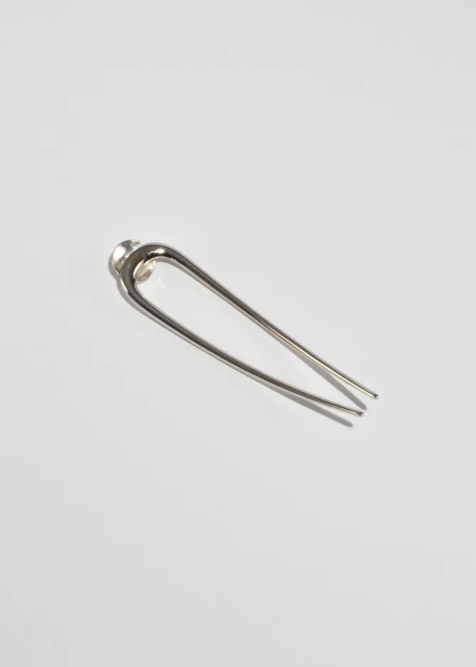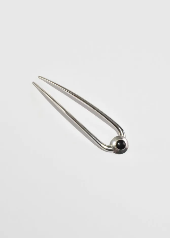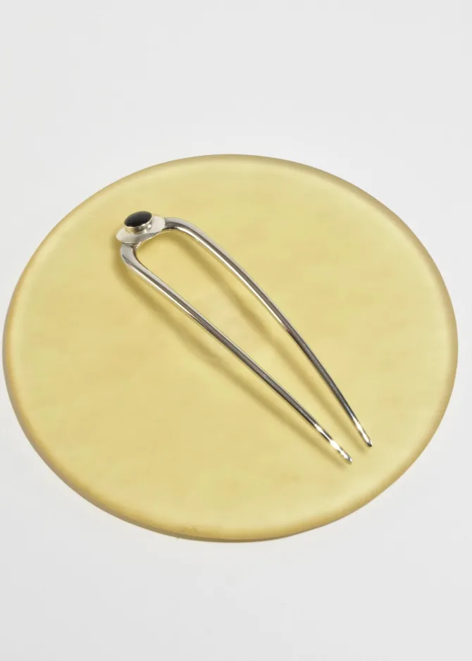 Beautiful, oversized vintage sterling hair pin with a round onyx stone in a sterling setting.