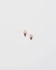 Vintage, gold petite stud earrings with faceted ruby stones and pearl detail, pierced. Stamped,14k.