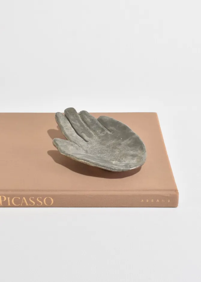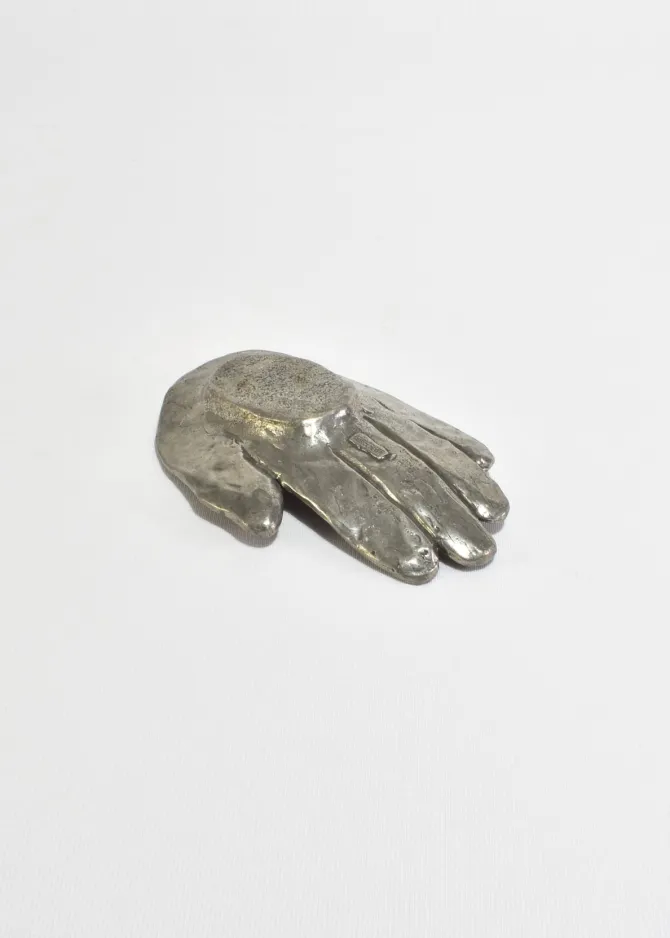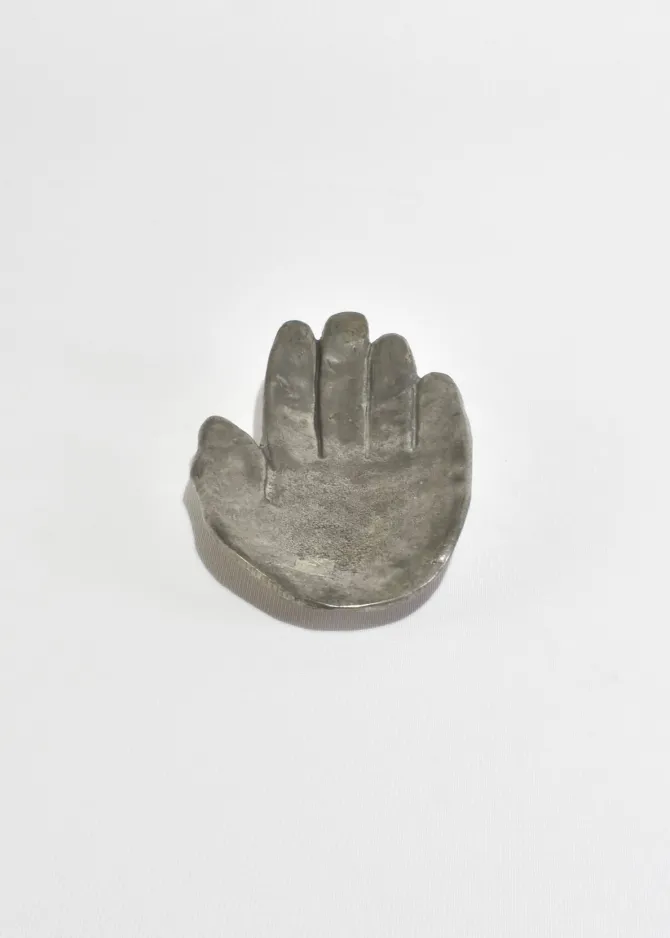 Rare, solid pewter life-size hand catchall byPatrick Meyer.