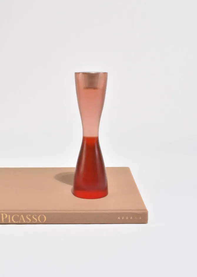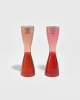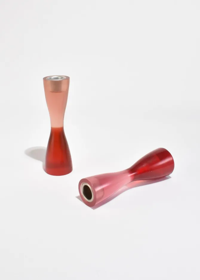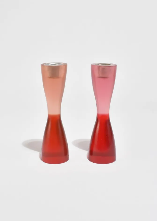 Vintage curvy resin candleholder set of two in pink and red, byArtecnica.Holds a taper candle measuring 1″ wide.