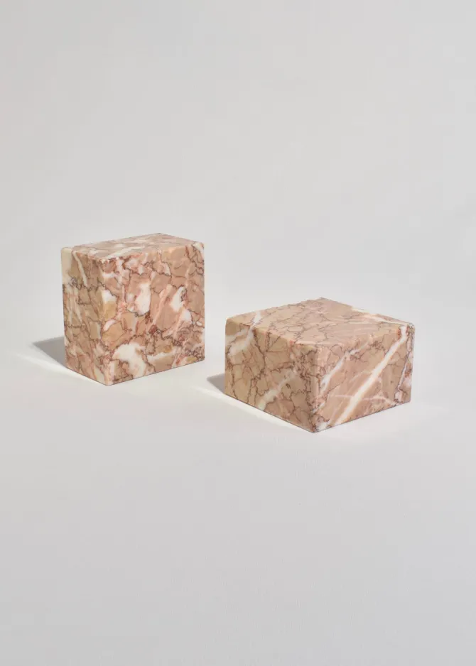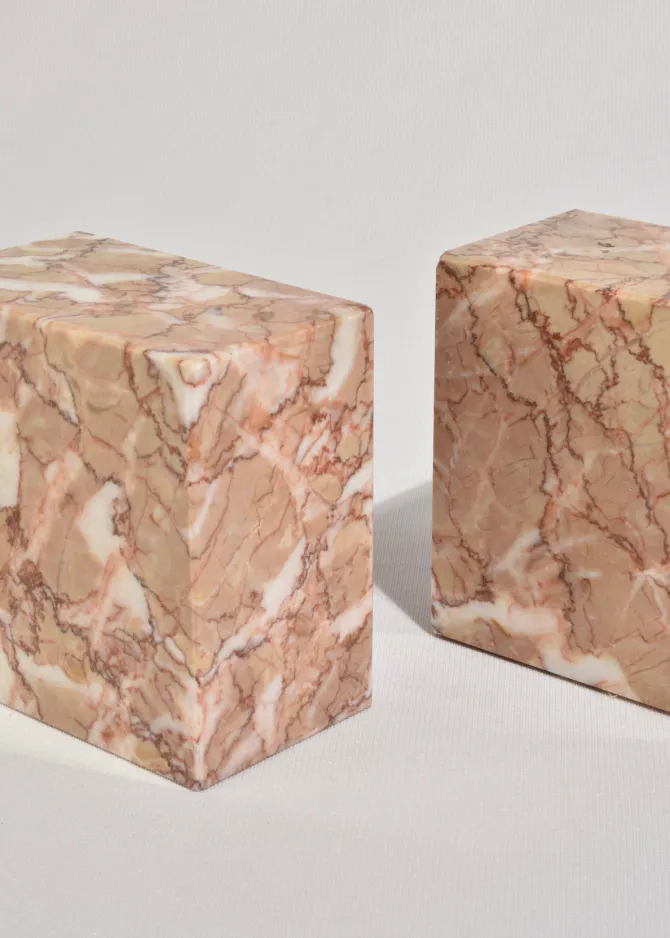 Vintage marble bookends in pink with red and ivory veining.