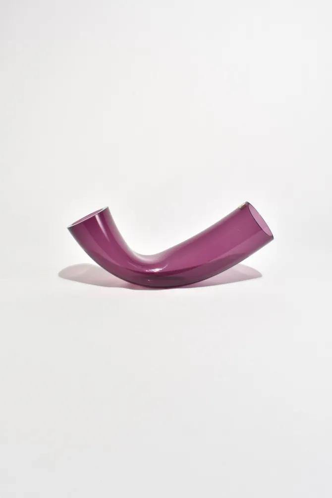 Rare vintage glass curved vase with a double opening. Beautiful, sculptural piece on its own or paired with favorite flowers.