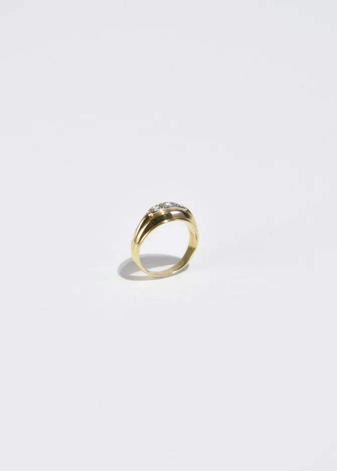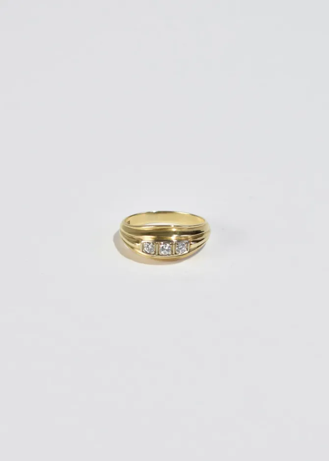 Stunning vintagegold ringwith a sculpturalribbed band and three diamonds.Stamped585 (14k).