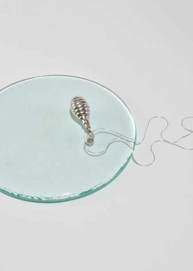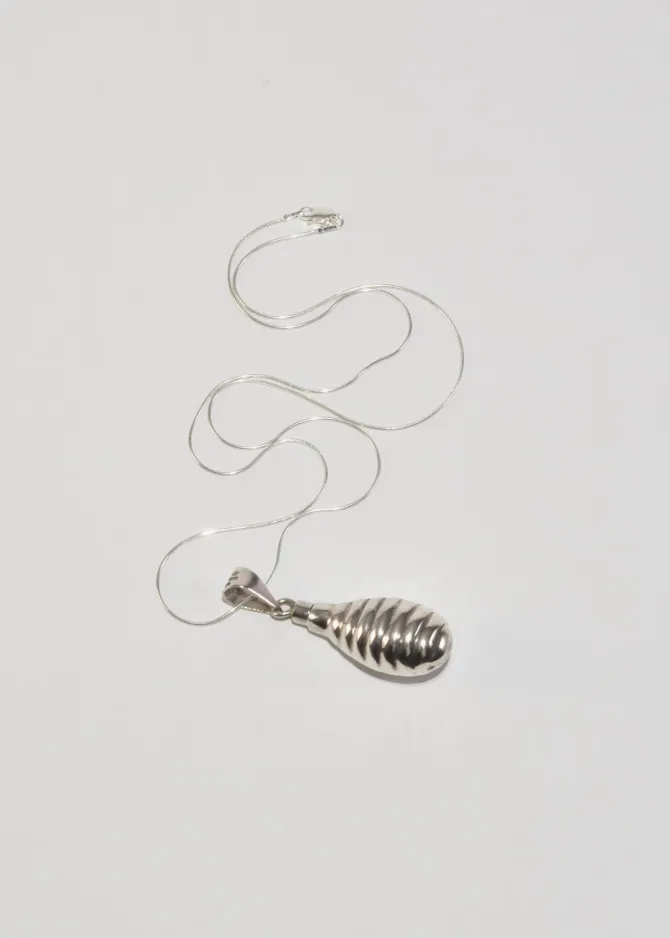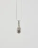 Vintage sterling necklace with an oblong perfume bottle pendant and ribbed detail, clasp closure. Stamped,Mexico 925.