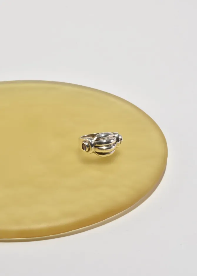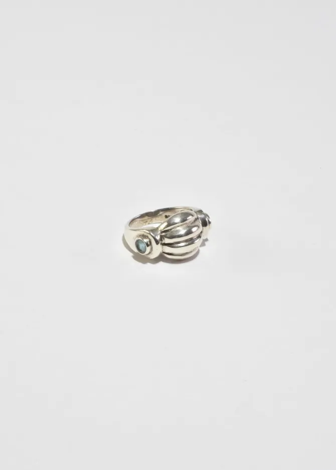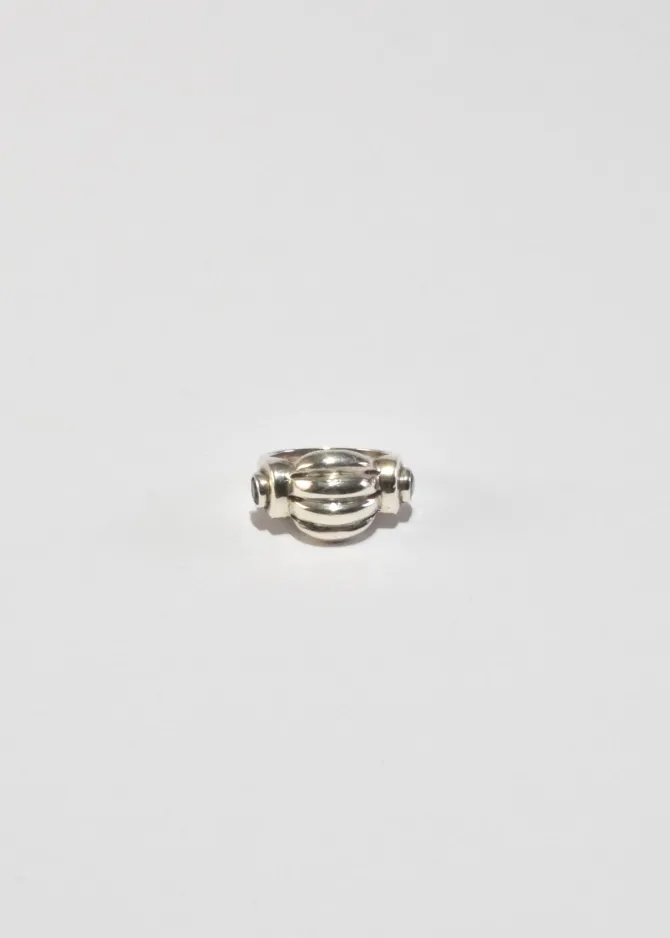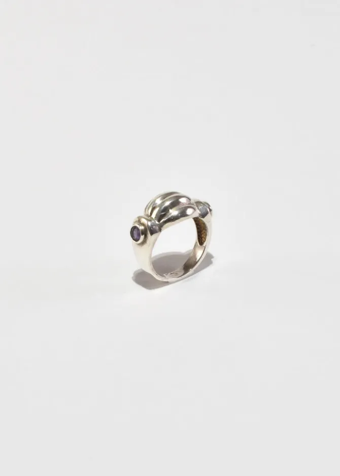 Vintage sterling ring with ribbed dome detail and blue topaz and amethyst stones. Stamped,925.